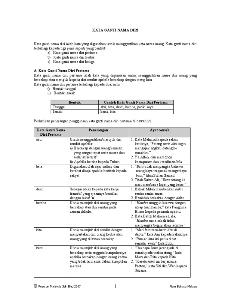 Up to 24 cash back Kata ganti nama diri terbahagi kepada tiga jenis iaitu. A short summary of this paper. Kata Ganti Nama dalam Bahasa Mendriq.